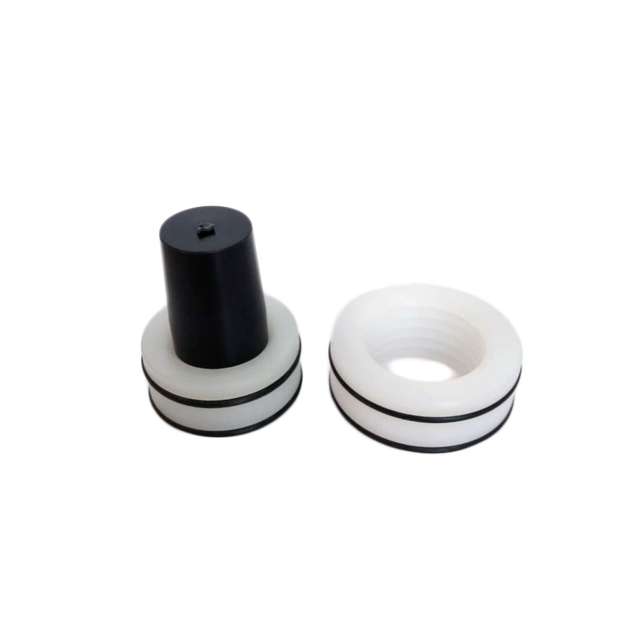 Комплект уплотнений для плунжера насоса высокого давления окрасочного аппарата AvS-4001. Кольцо большого диаметра устанавливается в нижнюю часть блока, кольцо меньшего диаметра устанавливается в верхнюю часть блока для уплотнения штока.